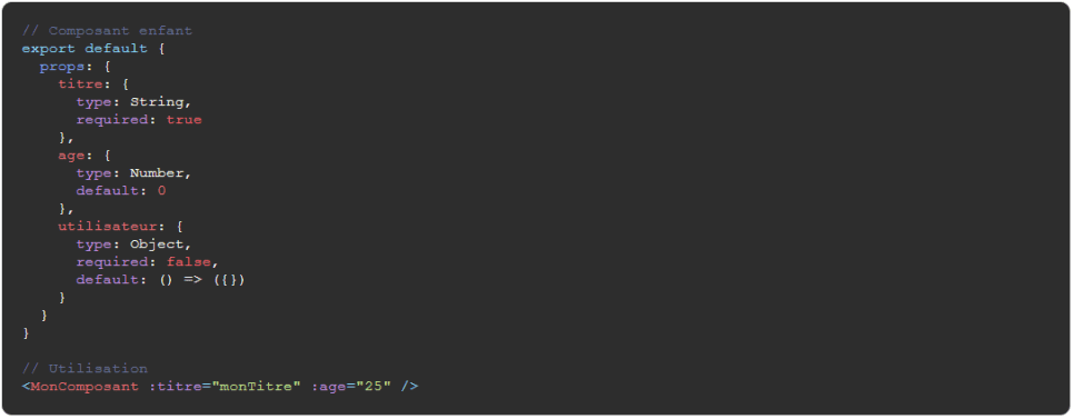 Pour passer des données d'un composant parent à un composant enfant, il faut utiliser les props.