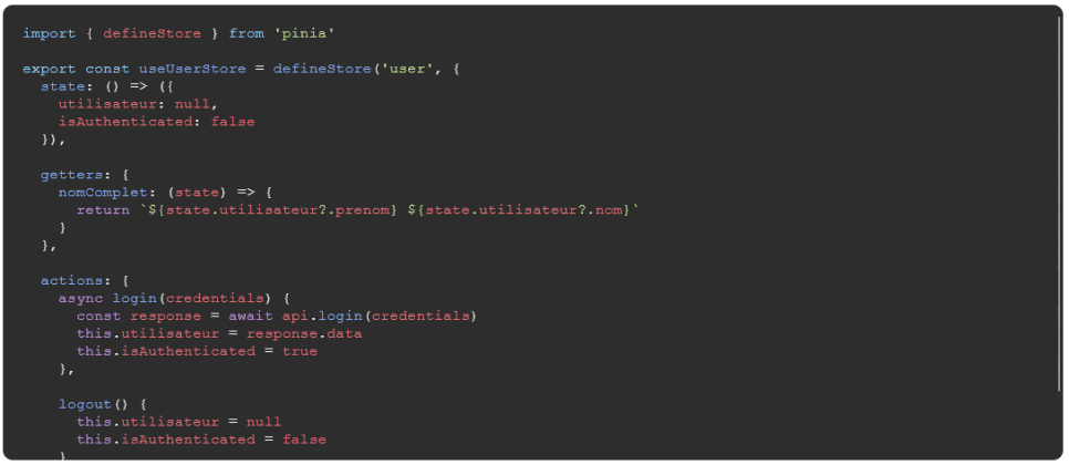 - Store centralisé pour l'état global de l'application